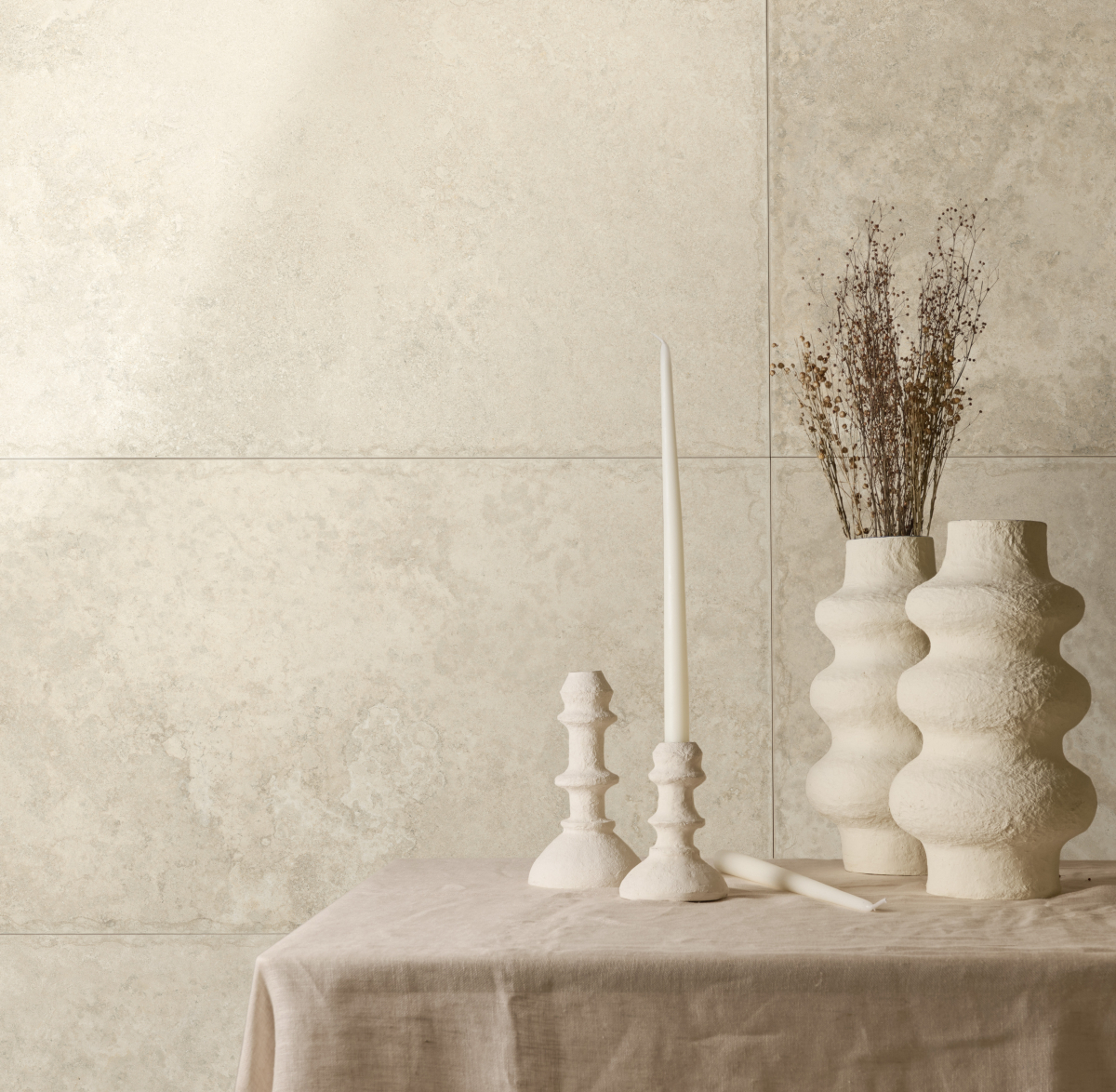 L’ispirazione della materia naturale si riverbera attraverso un colore chiaro e luminoso, adatto a un’ampia gamma di soluzioni e accostamenti.